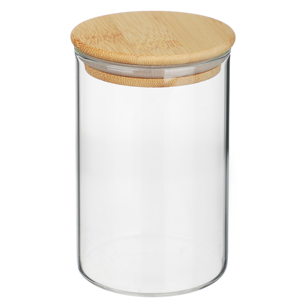 Банка для хранения объемом 300 мл из прозрачного стекла с бамбуковой крышкой предназначена для хранения сыпучих продуктов: круп, орехов, специй, сухофруктов. Смотрится стильно и лаконично на полке кухонного шкафа и поможет поддерживать порядок на кухне, а также быстро находить нужный продукт. Стекло отлично сохраняет свежесть и аромат содержимого, предохраняя продукты от воздействия посторонних запахов.