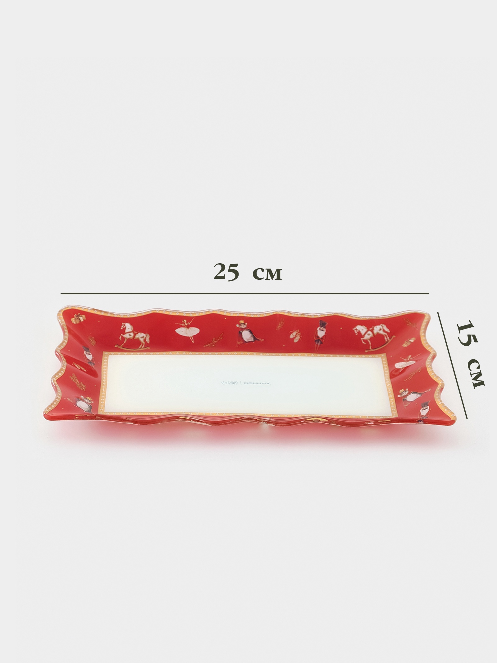 Новогодний стол заслуживает особого оформления! Сервировочное блюдо — прямоугольное стеклянное блюдо в бело-красной гамме с праздничным рисунком. Оно создано как для повседневного использования, так и того, чтобы подчеркнуть атмосферу зимнего праздника и аккуратно разместить угощения на обеденном столе.