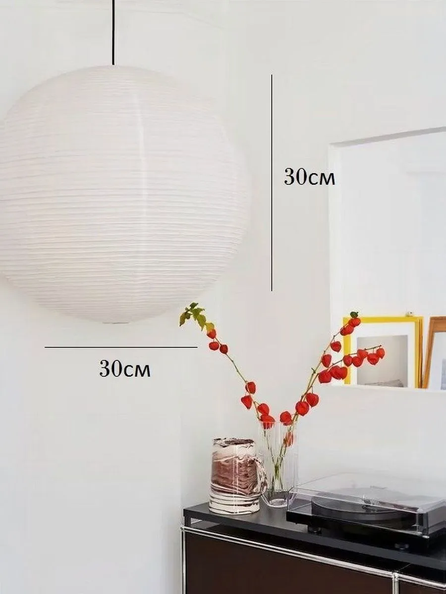 Бумажный фонарь диаметром 30 см из рисовой бумаги (часто с бамбуковым каркасом —популярный элемент декора для создания мягкого теплого освещения. Используется для подвешивания отлично подходит для оформления интерьеров и мероприятий.