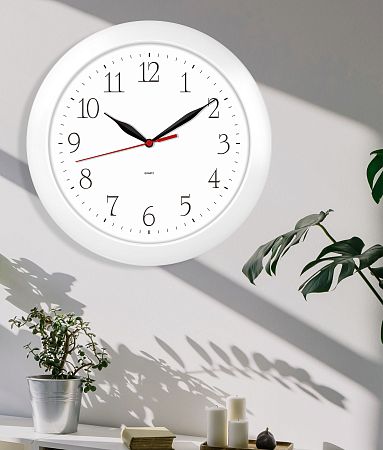 Часы настенные, модель 01, диаметр 290 мм, стекло пластиковое, пластиковый обод, цвет-белый.
