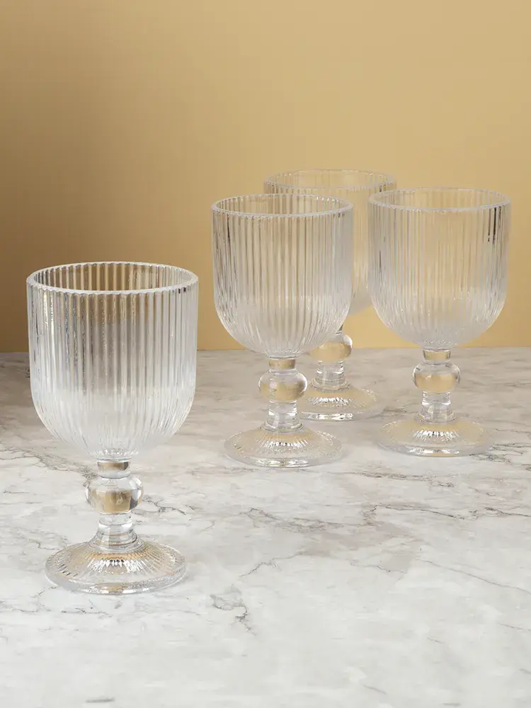 Бокалы выполнены в винтажном стиле в форме кубка, что добавляет им утонченности и делает их настоящими украшениями стола. Они универсальны и прекрасно подходят для различных напитков, будь то красное или белое вино, шампанское или коктейли. Прозрачное стекло бокалов красиво переливается на свету, создавая эффект игры света и тени и привлекая внимание к сервировке.
