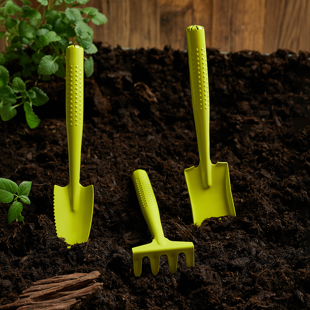 Набор садовых инструментов INBLOOM станет незаменимым помощником для садовода или огородника. Включает три предмета: грабельки и две лопатки, выполненные из металла. Яркий салатовый цвет инструментов сделает их заметными на участке и поможет быстро найти в случае необходимости.