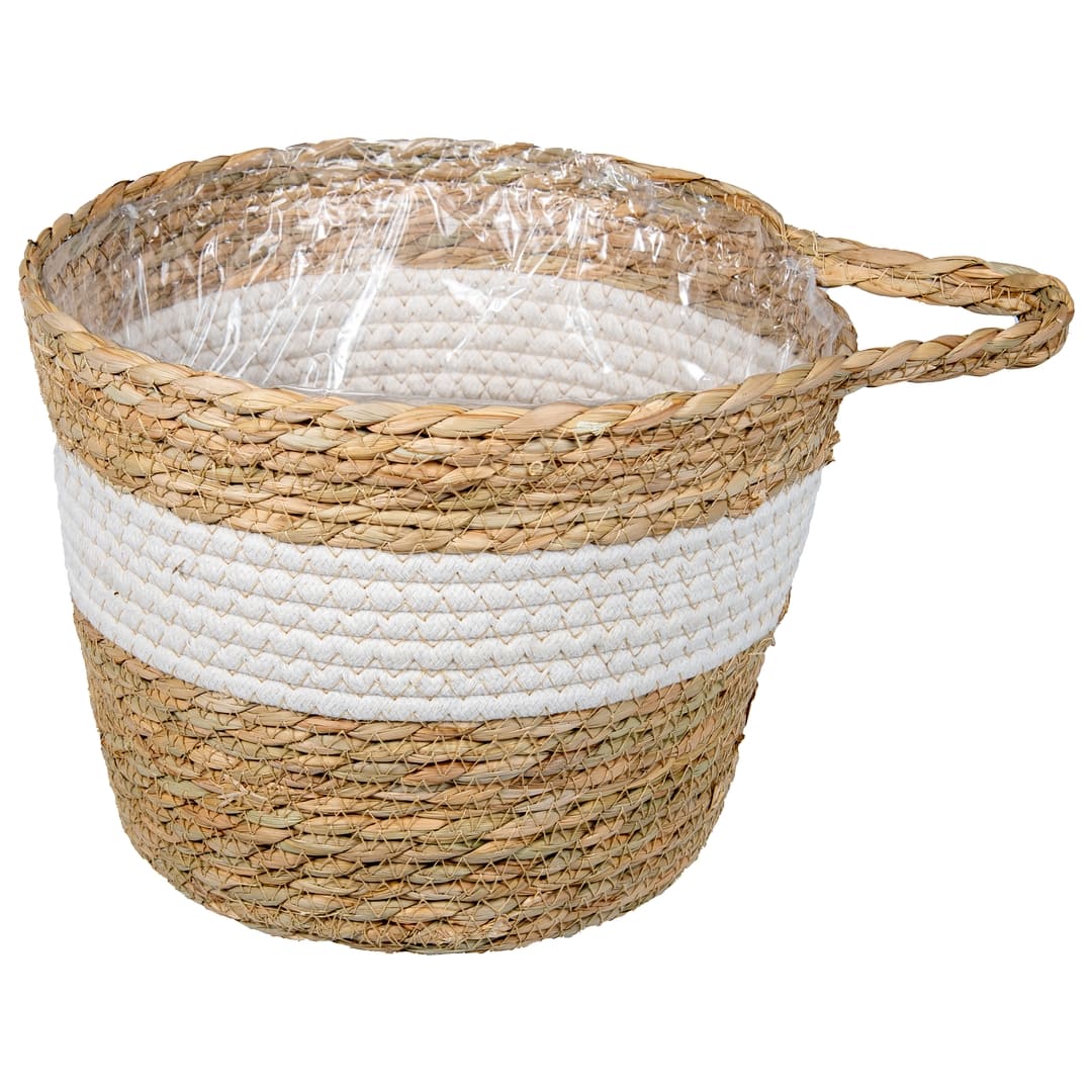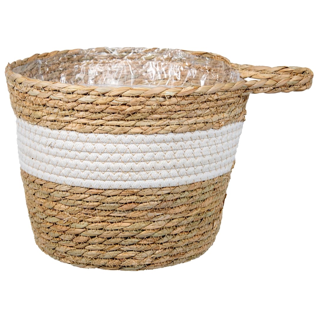 Плетеное кашпо из коллекции "Африка" предназначено для украшения интерьера в стиле эко, кантри, сканди и бохо. Внешняя часть кашпо изготовлена из натуральных материалов. Внутри кашпо находится вкладка из полипропиленовой пленки, которая надежно защитит плетение от возможного появления плесени при регулярном поливе цветка водой. Материал: рогоз, хлопковый шнур, полипропилен. Объем: 7,5 л.