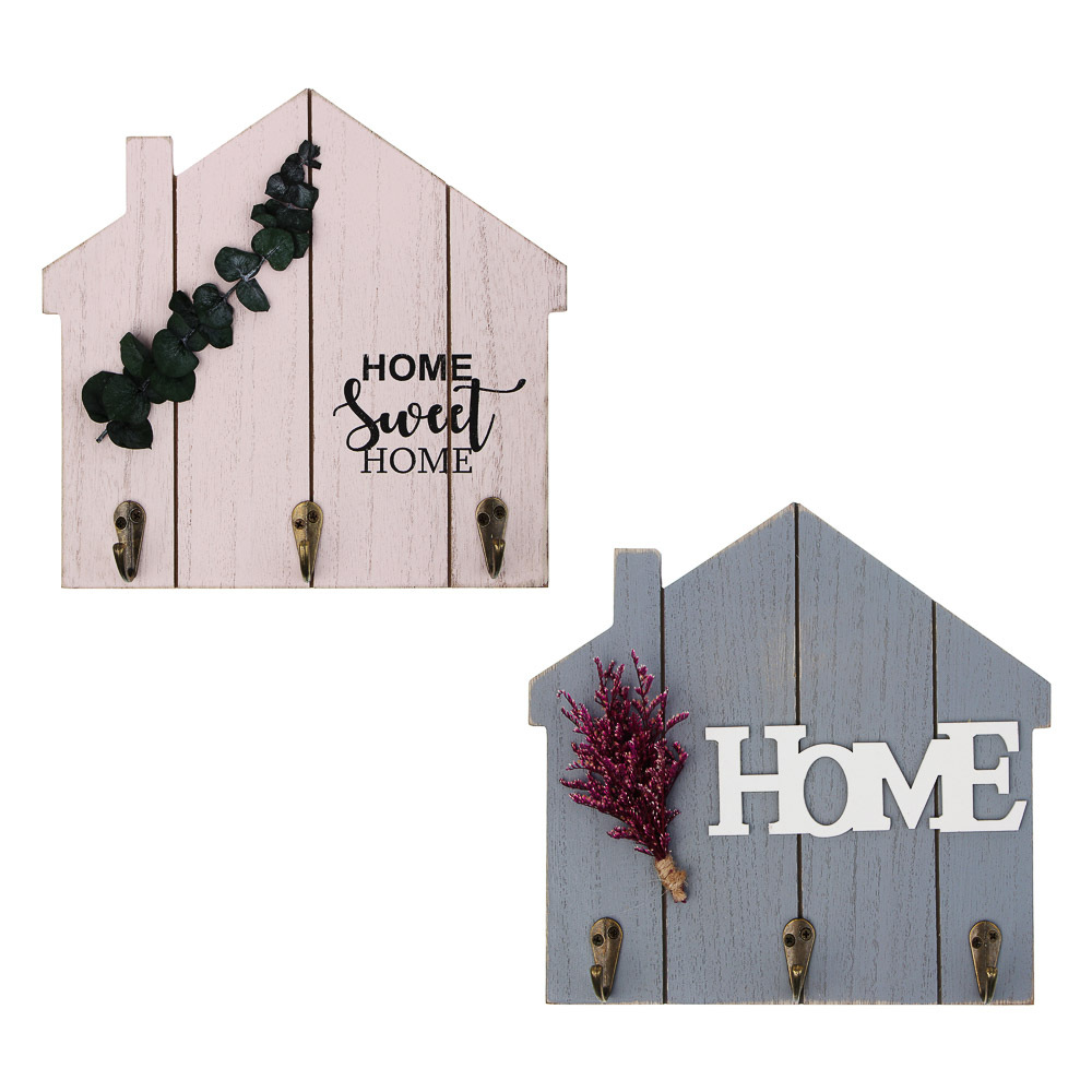 Элегантная ключница открытого типа в форме домика станет стильным и практичным аксессуаром для вашей прихожей. Выполнена из прочного МДФ с декоративным элементом и надписью «HOME», оснащена тремя надёжными металлическими крючками для хранения ключей и мелких аксессуаров. Размер: 23×21 см. Такой аксессуар поможет поддерживать порядок и добавит уюта интерьеру вашего дома. В ассортименте 2 дизайна.