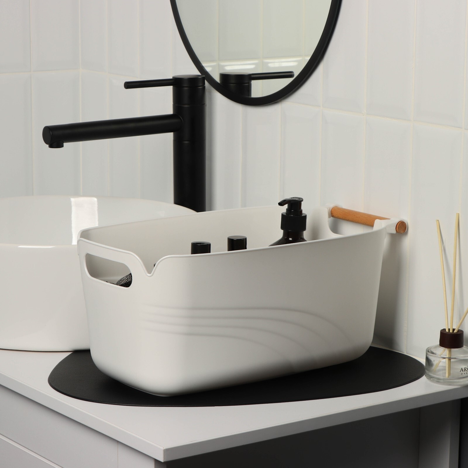 Белый цвет контейнера делает его универсальным и позволяет вписать в любой интерьер.