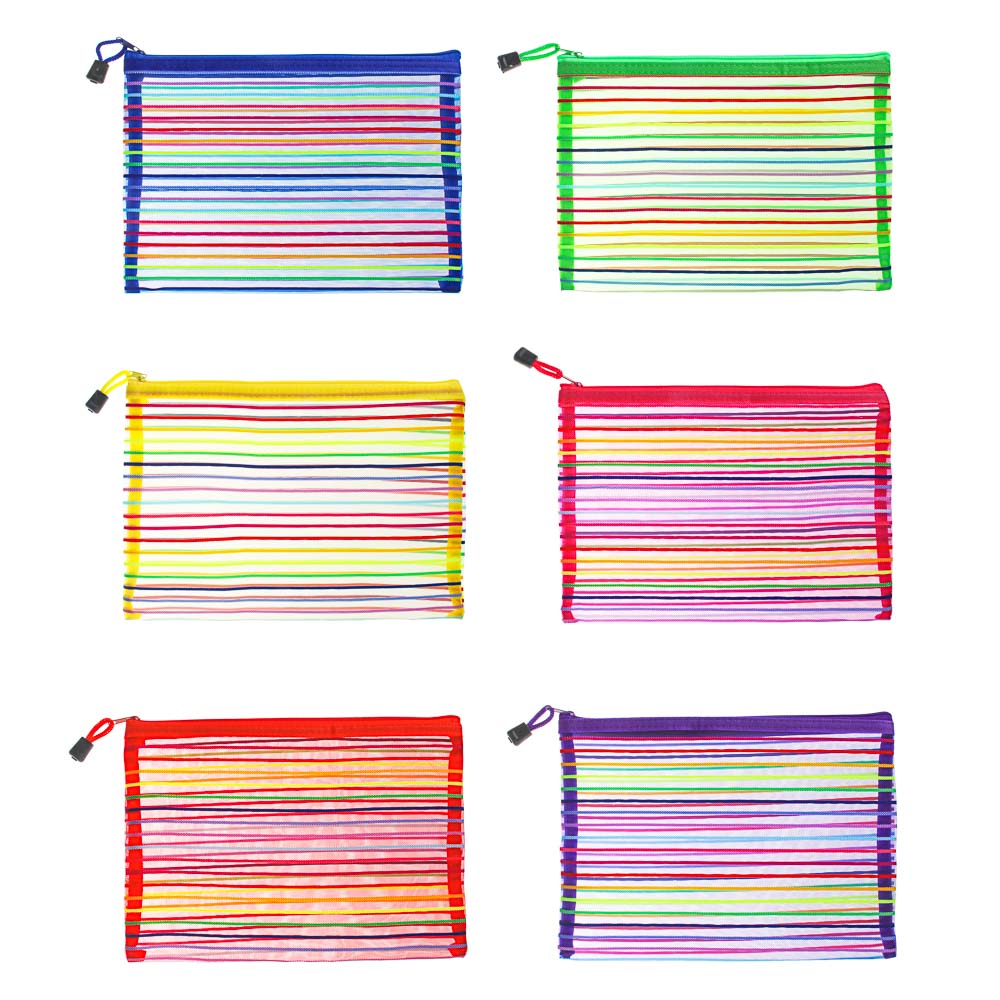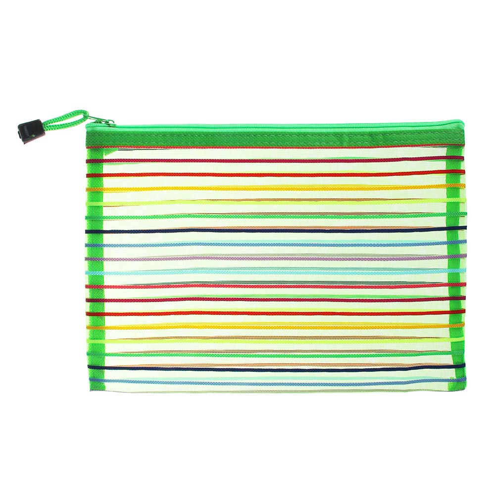 Универсальный конверт на молнии размера А4 изготовлен из полиэстера, что гарантирует его прочность и износостойкость. Сетчатый материал обеспечивает свободный доступ воздуха, учитывайте это, если для вас важно сохранить содержимое сухим. Такая особенность ткани делает конверт идеальной косметичкой или сумочкой для хранения косметики и аксессуаров. Несколько вариантов расцветки позволят выбрать конверт-косметичку, идеально подходящую именно вам.