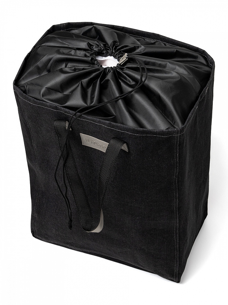 Корзина для белья DeNASTIA Джинсовая коллекция, 53x40x25 см. Корзина для хранения белья коллекции "Denim", выполнена из 100% хлопка, удобна в использовании. В пустом виде она практически не занимает места. Когда все вещи отправлены в стирку, корзину можно сложить и на время убрать из ванной. От хранения в компактном виде её внешний вид не пострадает. Такая корзина для вещей не занимает много места, она будет увеличиваться в объёме по мере заполнения бельём, а максимальный объём корзины - 53 л. Собранные для стирки вещи, поможет скрыть тканевая крышка фиксирующаяся на шнурок. Размер корзины: высота 53 см, длина 40 см, ширина 25 см. Рекомендована ручная стирка изделия при максимальной температуре 30°С. Цвет корзины чёрный.