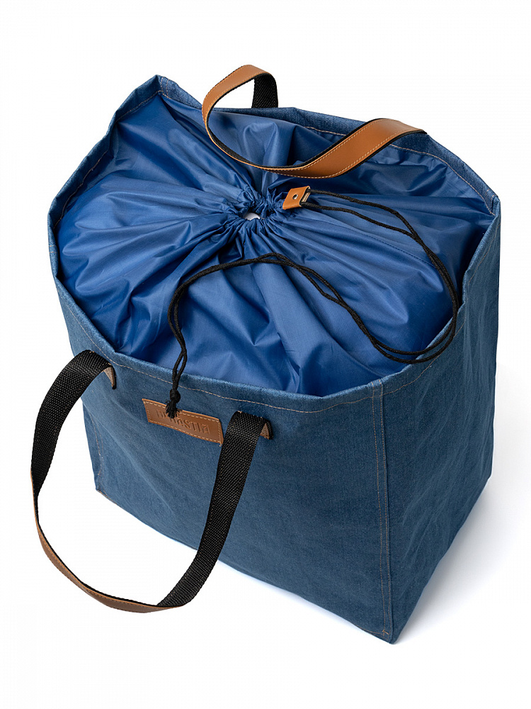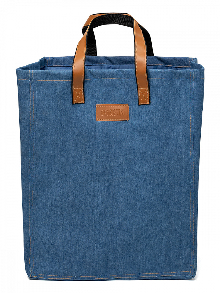 Корзина для белья DeNASTIA Джинсовая коллекция, 53x40x25 см. Корзина для хранения белья коллекции "Denim", выполнена из 100% хлопка, удобна в использовании. В пустом виде она практически не занимает места. Когда все вещи отправлены в стирку, корзину можно сложить и на время убрать из ванной. От хранения в компактном виде её внешний вид не пострадает. Такая корзина для вещей не занимает много места, она будет увеличиваться в объёме по мере заполнения бельём, а максимальный объём корзины - 53 л. Собранные для стирки вещи, поможет скрыть тканевая крышка фиксирующаяся на шнурок. Размер корзины: высота 53 см, длина 40 см, ширина 25 см. Рекомендована ручная стирка изделия при максимальной температуре 30°С. Цвет корзины синий.