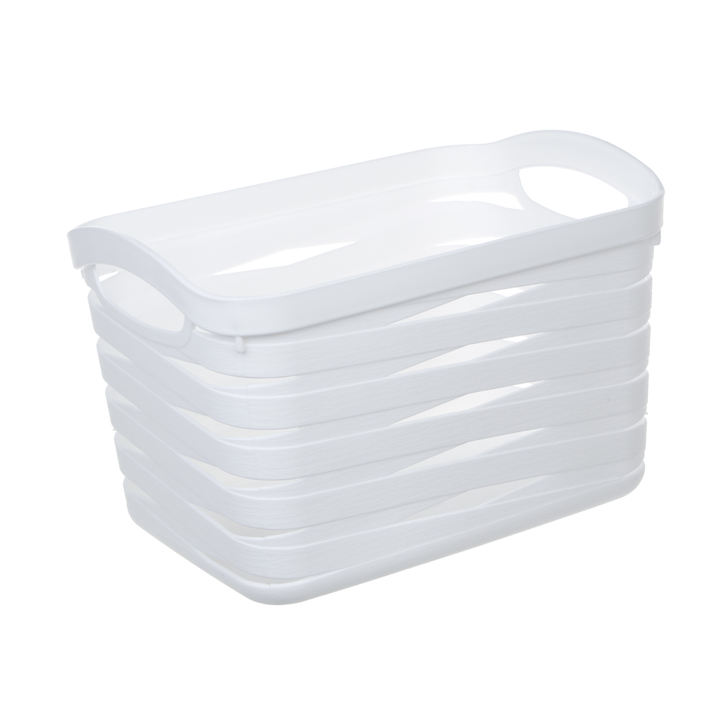 Стильная корзина для хранения VETTA станет незаменимым помощником в организации пространства вашего дома. Благодаря оптимальным габаритам 26х18х17 см и вместительности 5,6 литров, она идеально подходит для размещения на кухонных полках, в гардеробных или кладовых. Прочный пластиковый корпус гарантирует долговечность изделия и лёгкость в уходе. Материал не теряет внешний вид со временем и устойчив к механическим повреждениям. Элегантный белый цвет позволяет корзине гармонично вписаться в любой интерьер, от современной кухни до классической спальни. Практичное решение для хранения разнообразных предметов: в корзине удобно размещать консервацию и банки с продуктами, кухонные принадлежности и утварь. Она прекрасно подходит для организации хранения аксессуаров – шарфов, платков и головных уборов. Благодаря продуманной конструкции, корзину можно штабелировать, что экономит пространство при хранении.
