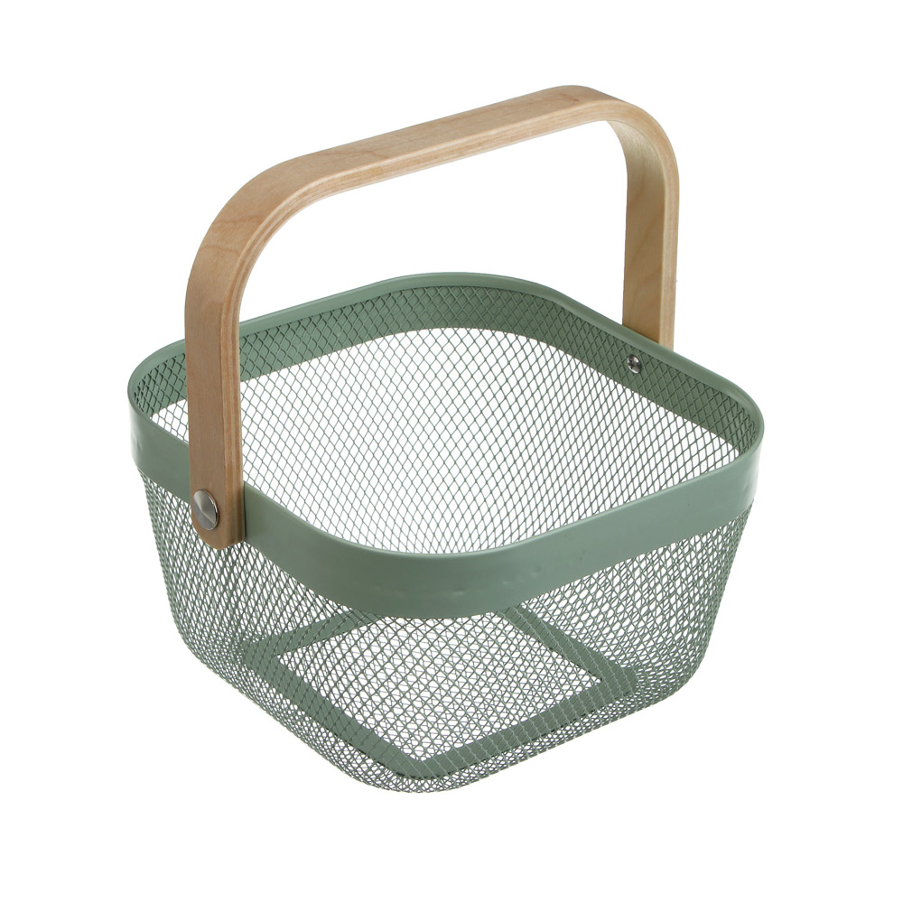 Корзинка сочетает в себе эстетику и функциональность, создавая универсальный аксессуар для дома и дачи. Её каркас выполнен из прочного металла, обеспечивающего долговечность и устойчивость, а натуральная деревянная ручка придает изделию уютный классический вид и делает переноску удобной. Стильный дизайн, в котором гармонично соединились металл и дерево, позволяет использовать корзинку в различных интерьерах. Она идеально подходит для хранения и переноски фруктов, овощей, хлебобулочных изделий или других домашних мелочей.