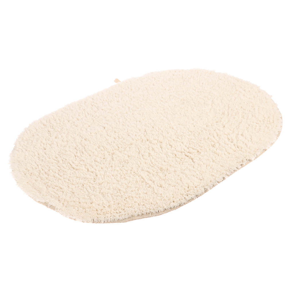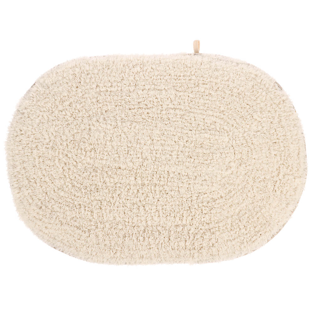 Нежный овальный коврик Terni из 100% хлопка добавит тепла и уюта вашей ванной комнате. Кремовый цвет создаёт атмосферу мягкости и чистоты, а натуральный материал прекрасно впитывает влагу и приятен на ощупь. Коврик не скользит, легко стирается и быстро сохнет. Идеален для использования у ванны или раковины, сочетая функциональность с эстетикой натурального текстиля.
