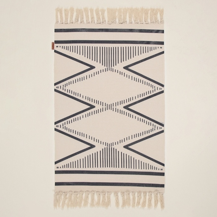 Представляем вашему вниманию «Коврик Cotton Comfort» — идеальное дополнение для вашего интерьера. Этот стильный ковёр сочетает в себе универсальные бежевые и чёрные тона, которые прекрасно впишутся в любой дом. Узорчатый дизайн придаёт ему изысканность, а бахрома добавляет нотку уюта.