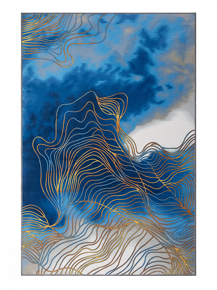 Коврик LUCKY 80x120 см, цвет синий/золотой. Безворсовый полиэстровый коврик, легко стирается и быстро сохнет. Благодаря яркому и интересному дизайну легко впишется в любой интерьер, и создаст ощущение комфорта. Ковер имеет универсальное назначение, он антибактериальный и гипоаллергенный. Коврик способен украсить гостиную, кухню, зал, спальню (как прикроватный палас), ванную с туалетом, балкон и детскую комнату. Подходит как половик под обувь для прихожей и коридора. Декор для дома, дачи и офиса, прекрасная защита от царапин для ламината и паркета. С обратной стороны противоскользящее ПВХ покрытие.