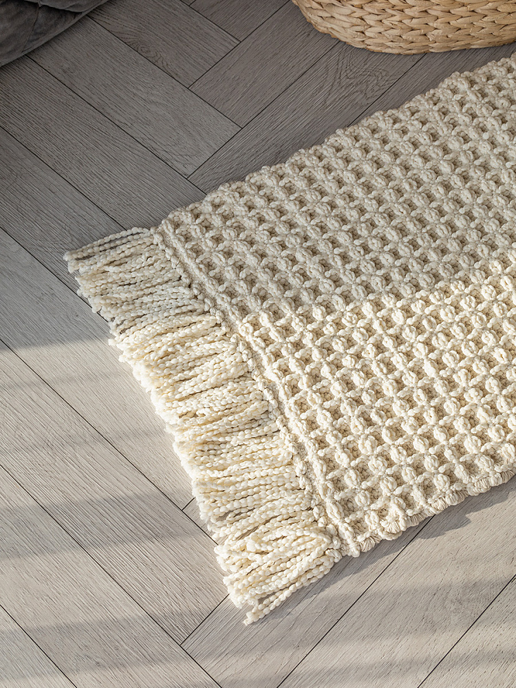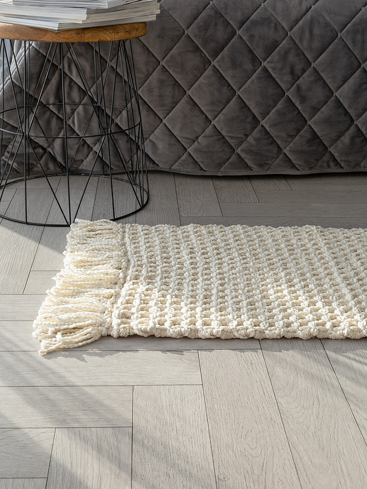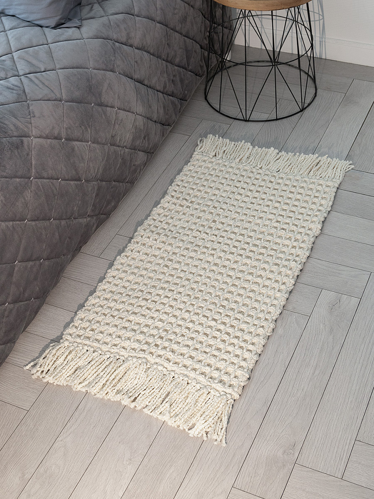 Вафельный коврик из индийского хлопка — это уют, стиль и практичность для любого уголка вашего дома. Коврик в стиле джапанди изготовлен из хлопка с полиэстером. Сочетание натурального хлопка и износостойкого полиэстера — это идеальный баланс. Коврик сохраняет мягкость и приятные тактильные ощущения, при этом он долговечен, устойчив к истиранию и не боится активного использования. Крупное вафельное переплетение создаёт приятный массажный эффект для стоп, дарит ощущение тепла и уюта. Это тот самый тактильный комфорт, который делает дом домом. Вафельная структура отлично впитывает влагу и быстро сохнет. Для коврика рекомендована ручная стирка. Благодаря лаконичному дизайну и натуральной текстуре, коврик в стиле бохо гармонично впишется в интерьер прихожей, ванной, кухни, спальни или балкона. Длинная бахрома по двум сторонам добавляет изделию handmade-шарм и законченный вид. Размер коврика 50х80 см без учета бахромы.