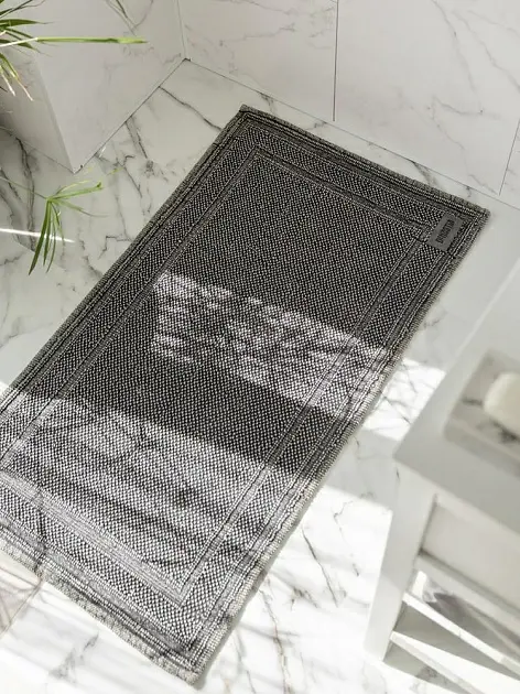 Коврик для ванной комнаты коллекции "Denim" изготовлен из 100% Индийского хлопка. Хлопок обладает отличными впитывающими свойствами, быстро сохнет, гигиеничен, гипоаллергенный. Хлопковая нить, оборотной стороны коврика пропитана резиновым противоскользящим составом, который позволяет ему быть устойчивым на любой поверхности. Коврик универсального назначения, способен украсить любую комнату. Подойдёт для ванной, гостиной, спальни и детской комнаты. Изделие выполнено под джинсу, смотрится очень интересно и стильно. Не прихотлив в уходе, возможна стирка изделия с применением нейтрального моющего средства. Размер коврика 60х100 см.