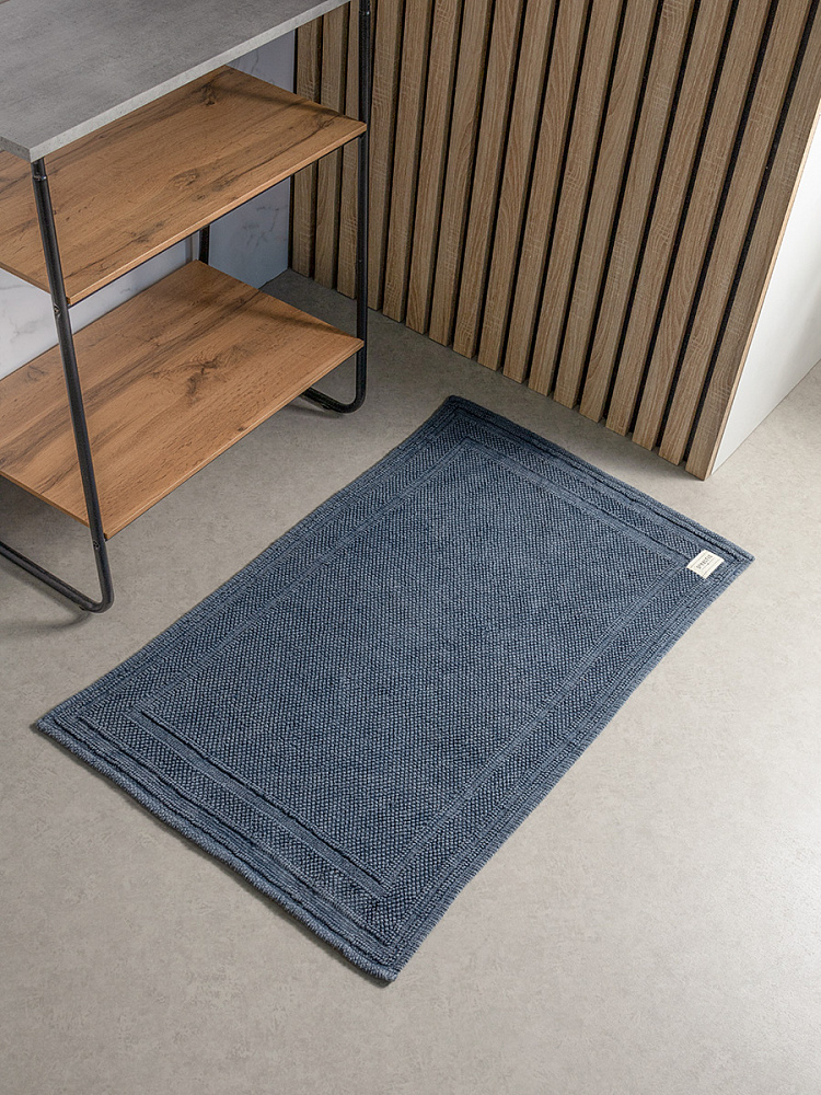Коврик синего цвета для ванной комнаты и туалета коллекции "Denim" изготовлен из 100% хлопка. Хлопок обладает отличными впитывающими свойствами, быстро сохнет, гигиеничен, гипоаллергенный. Хлопковая нить, оборотной стороны коврика пропитана резиновым противоскользящим составом, который позволяет ему быть устойчивым на любой поверхности. Коврик универсального назначения, способен украсить любую комнату. Подойдёт для ванной, гостиной, спальни и детской комнаты. Изделие выполнено под джинсу, смотрится очень интересно и стильно. Не прихотлив в уходе, возможна стирка изделия с применением нейтрального моющего средства. Размер коврика 60х100 см.
