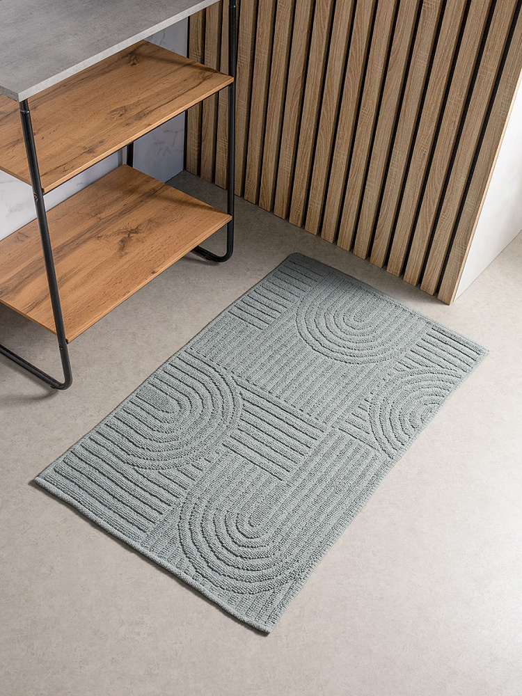 Коврик универсальный DeNASTIA 60x100 см, Barbara букле, х/б, цвет зеленый. Коврик для ванной комнаты и туалета изготовлен из 100% Индийского хлопка. Хлопок обладает отличными впитывающими свойствами, быстро сохнет, гигиеничен, гипоаллергенный. Хлопковая нить, оборотной стороны коврика пропитана резиновым противоскользящим составом, который позволяет ему быть устойчивым на любой поверхности. Коврик универсального назначения, способен украсить любую комнату. Подойдёт для ванной, гостиной, спальни и детской комнаты. Не прихотлив в уходе, возможна стирка изделия с применением нейтрального моющего средства. Размер коврика 60х100 см.