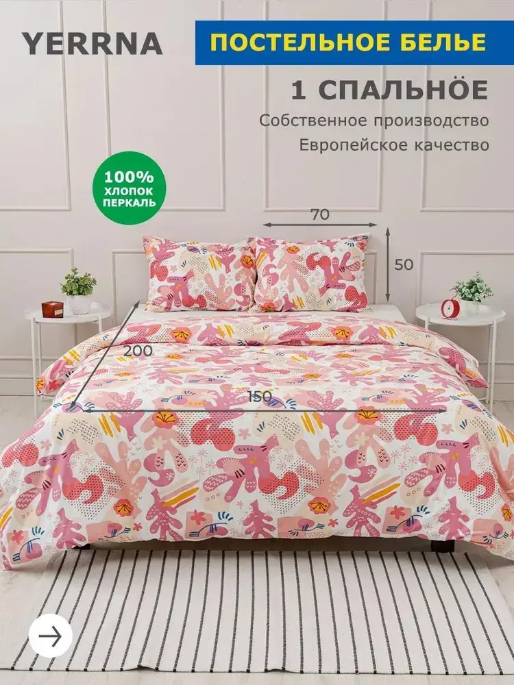 КПБ YERRNA 1.5сп 150*200 под/ 50*70 нав рисунки