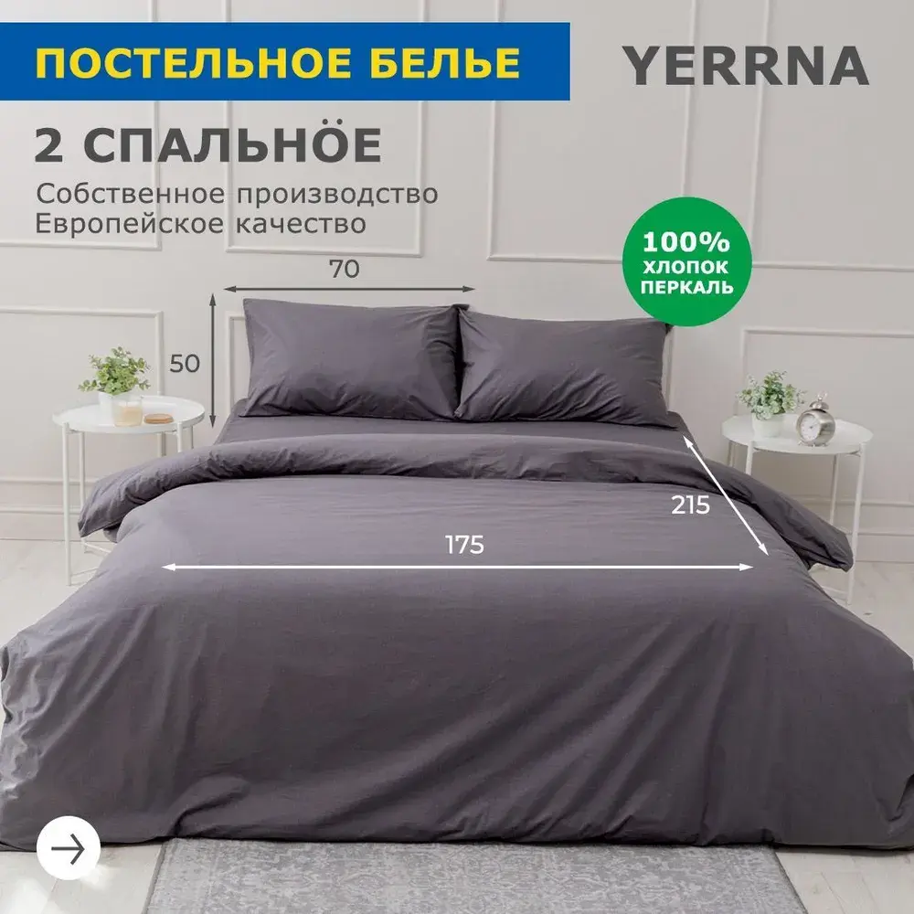 Этот комплект состоит из пододеяльника на молнии 175*215 см и двумя наволочками 50*70 см. После стирки размеры не поменяются, потому что есть запас на усадку! Плотная и мягкая ткань из 100% хлопка выдержит любые нагрузки, в ней 152 нити на кв.дюйм и ее зовут перкаль.