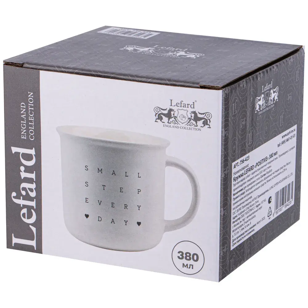 КРУЖКА LEFARD серии "POSITIVE" объемом 380МЛ выполнена в стиле минимализм. Кружки LEFARD - это интересные дизайнерские решения, функциональные и стильные вещи для жизни. Вы можете использовать кружки как чашки для чая, кофейные чашки, так и подавать в них холодные напитки. Кружка идеальна в подарок любимым, друзьям, родным, коллегам, любимой бабушке, жене, лучшей подруге на день рождения, новый год, новоселье, юбилей, просто так без повода. Размер 12.8*9.6*8.8