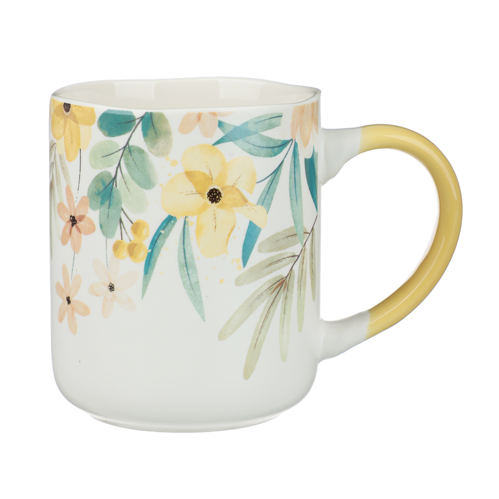 Кружка тм MILLIMI «Весна», объем 380 мл – это качественная фарфоровая посуда с нежным весенним цветочным принтом, которая с каждым глотком утреннего ароматного кофе или чая будет заряжать бодростью и отличным настроением. Кружка имеет большой объем, долго держит тепло, позволяя наслаждаться неспешным чаепитием. Широкое основание делает ее устойчивой к опрокидыванию, а удобная ручка комфортно ложится в руку и не выскальзывает. Фарфор не царапается, легко очищается и не тускнеет. Серия включает 4 дизайна, которые прекрасно сочетаются друг с другом.