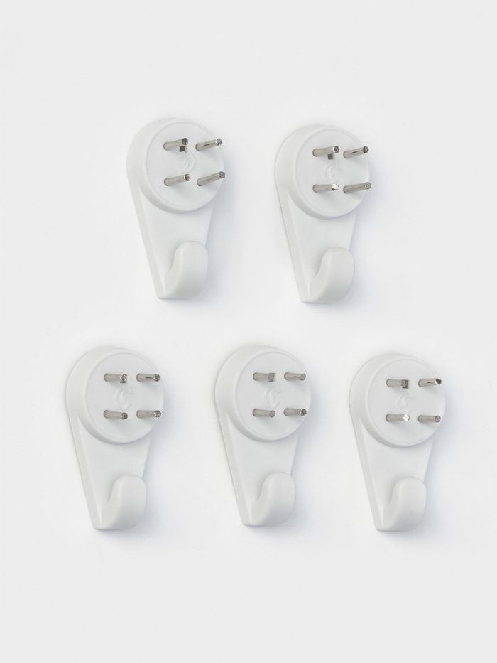 - Крючки просты в использовании: в стену их может забить даже десятилетний ребёнок или пенсионер.