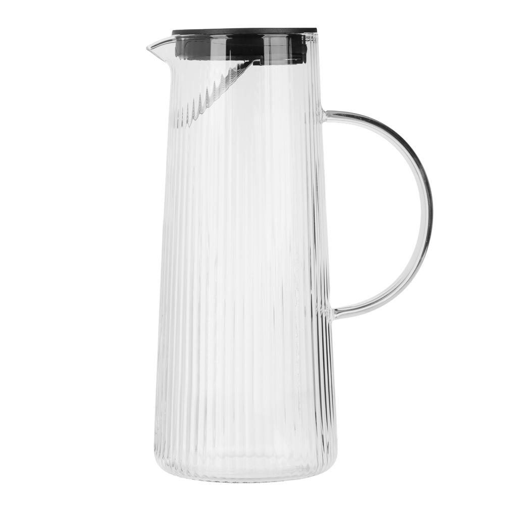 Кувшин с крышкой тм MILLIMI «Симпл», объём 1500 мл, изготовлен из качественного прозрачного стекла и украшен стильной рифлёной поверхностью. Минималистичный дизайн гармонично впишется в любой интерьер кухни и станет аккуратным акцентом на обеденном или праздничном столе. Наличие крышки обеспечивает дополнительный комфорт в использовании: она защищает напитки от пыли и посторонних запахов, позволяя дольше сохранять их свежесть. Кувшин идеально подходит для воды, сока, лимонада, компота, морса и других холодных напитков. Увеличенный объём 1,5 литра оптимален для семьи или компании гостей. Стекло не впитывает запахи, не влияет на вкус напитков, легко очищается и устойчиво к повседневному использованию.