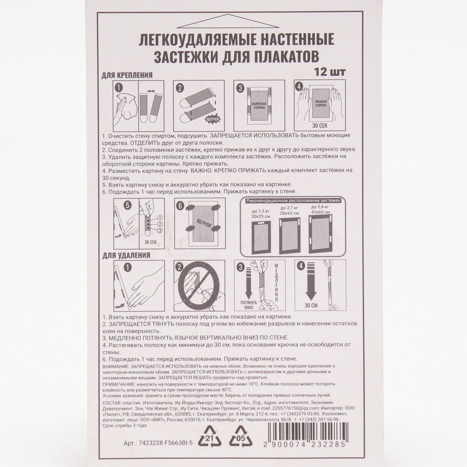С помощью клейкие застежки Мой выбор ( липучки, крючки на стену, крепеж, полоски) можно легко и безопасно крепить разнообразные аксессуары на вертикальной поверхности. Вы не портите стены, не шумите, не сверлите, никаких лишних движений. При необходимости можно удалить, потянув за клейкую полоску. Благодаря настенным застежкам можно эстетично крепить к стене все что угодно соблюдая весовую нагрузку - роутер, часы, полки, рамки, картины. Одна застежка фиксируется на стене, а другая - на раме. Именно поэтому Вы можете вешать и снимать Ваши фотографии, предметы интерьера столько раз сколько пожелаете. Соблюдайте инструкцию по применению на оборотной стороне упаковки! Подходит для твердых, ровных поверхностей и окрашенных стен. Не подходит для бумажных или виниловых обоев, шероховатых поверхностей.