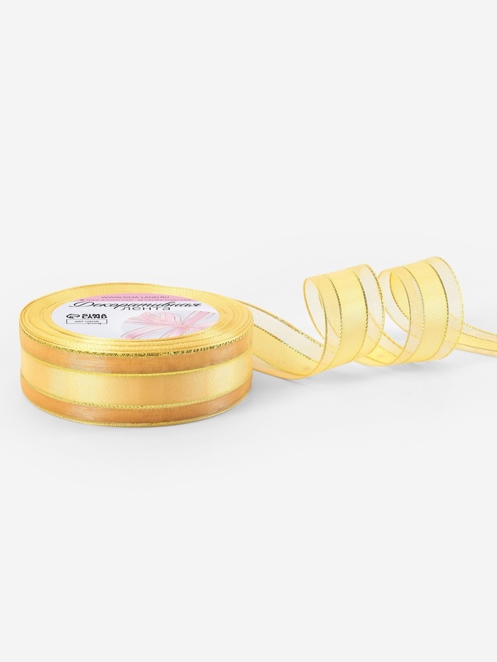 Лента декоративная, капроновая/атласная, с люрексом, 25 мм, 18±1 м, цвет золотой