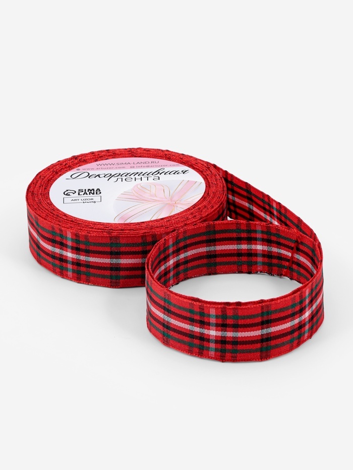 Лента новогодняя, декоративная «Крупная клетка», 25 мм, 9±0.5 м, красная