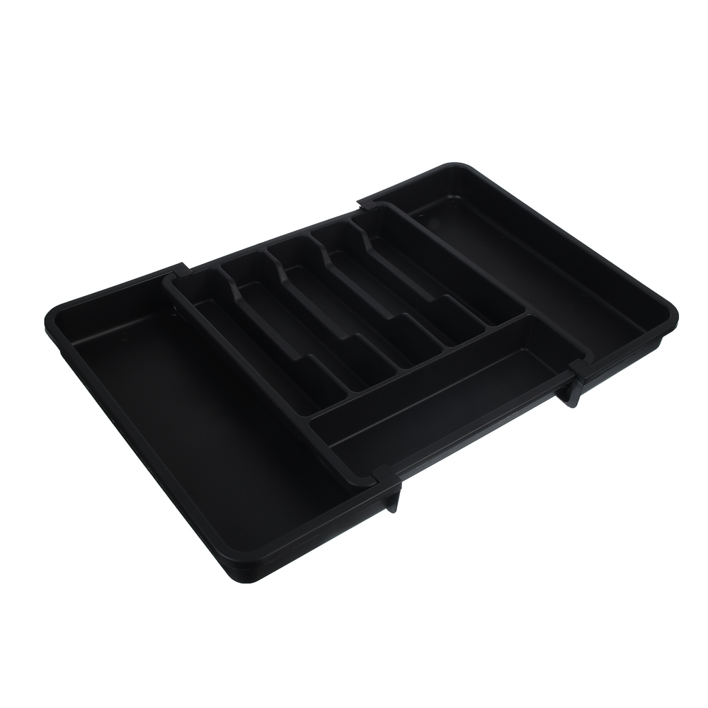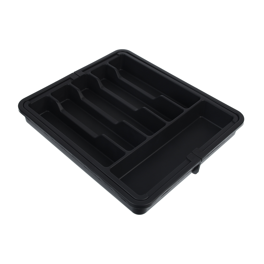 Подставка для столовых приборов от торговой марки VETTA — эргономичное и практичное решение для поддержания порядка на кухне. Модель выполнена из прочного пластика классического черного цвета, что делает её универсальным элементом любого интерьера. Её ключевой особенностью является раздвижная конструкция: в разложенном состоянии подставка достигает размера 37×33 см, что позволяет разместить большое количество столовых приборов. Внутреннее пространство организовано в шесть удобных отделений, обеспечивающих четкое распределение ножей, вилок, ложек и других принадлежностей. Такая конструкция не только экономит место на столе, но и обеспечивает быстрый доступ к нужным предметам, сочетая в себе функциональность, лаконичный дизайн и долговечность.