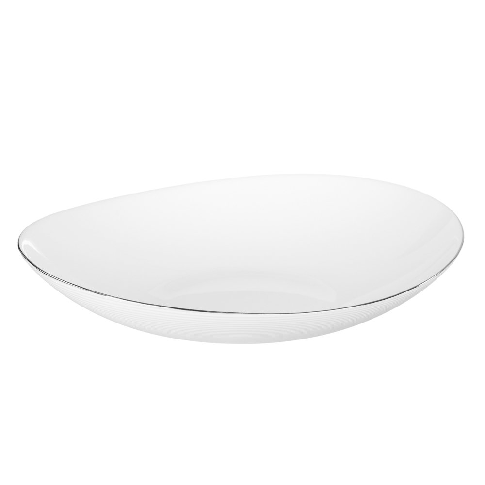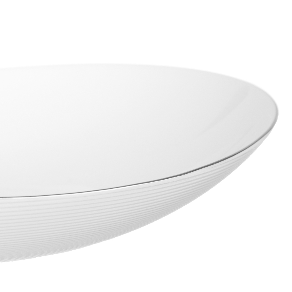 Тарелка суповая MILLIMI «Аура» 23 см, объем 560 мл – это качественная эстетичная посуда из опалового стекла для повседневной и праздничной сервировки. Белая тарелка имеет нестандартную овальную форму с серебристой отводкой, которая придает изделию изящный и завершенный вид. Поможет разнообразить классическую сервировку в строгом торжественном стиле, добавляя современных ноток в традиционный стиль и не конфликтуя с общей дизайнерской концепцией. Посуда подходит для индивидуальной подачи супов и салатов. Выдерживает множество циклов мойки, не образует царапин и не тускнеет.