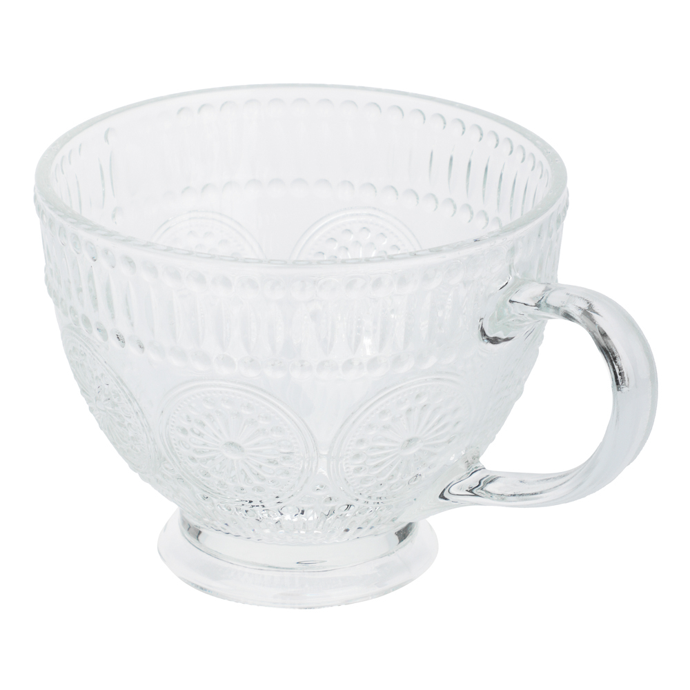 Кружка с рельефным рисунком на ножке MILLIMI, 420 мл из прозрачного стекла имеет эстетичный дизайн с оригинальным рельефным узором, который придает изделию аристократичный и утонченный вид. Кружка подходит для любых горячих напитков, но также может использоваться в качестве вазы для варенья, меда или конфет, а также заменит сахарницу. Будет актуально смотреться как в повседневной, так и в праздничной сервировке, гармонично сочетаясь с любой посудой, столовыми приборами и другими элементами сервировки. Легко моется, не тускнеет с течением времени.