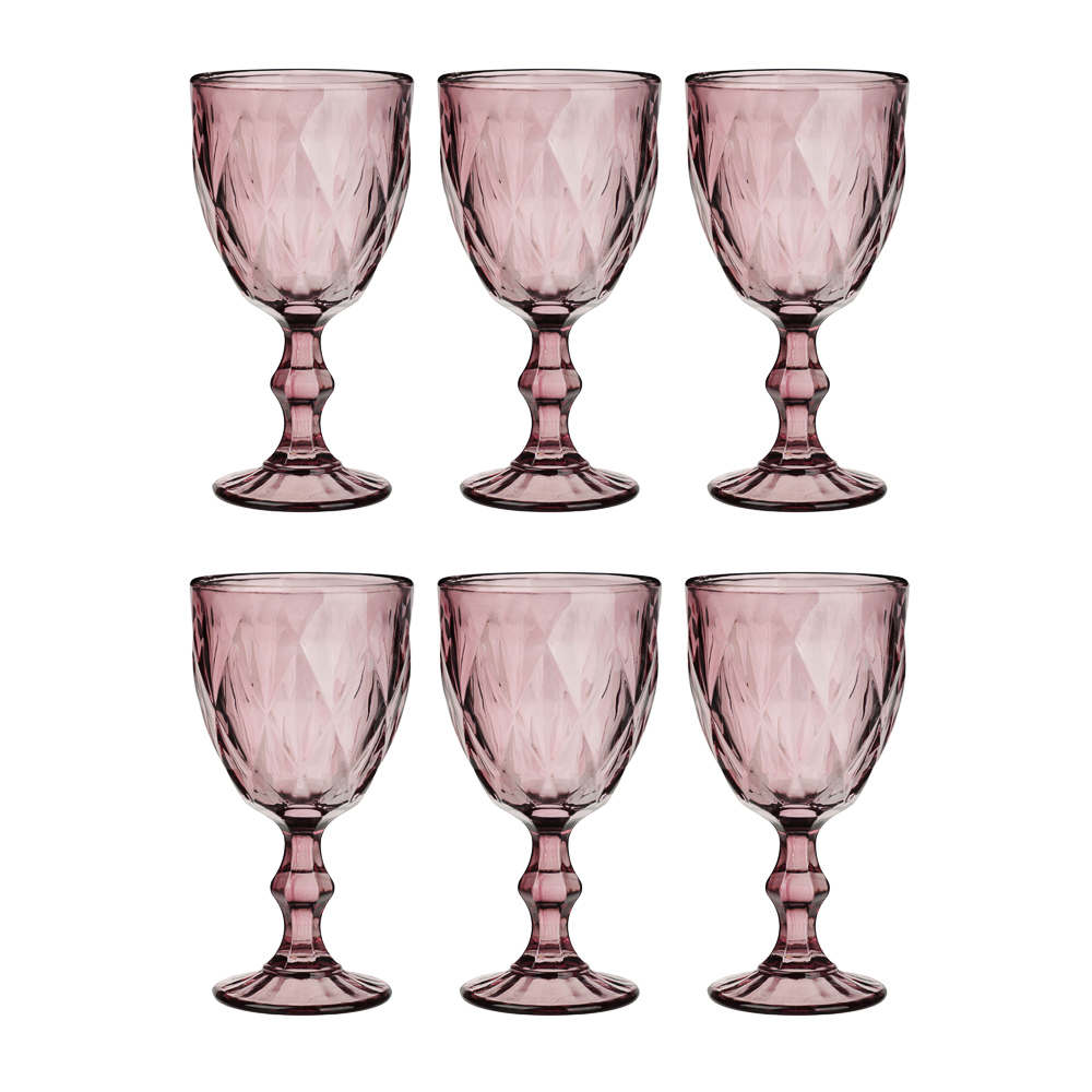 Набор из шести бокалов MILLIMI 320 мл – воплощение элегантности и роскоши для вашего праздничного или повседневного стола. Каждый бокал изготовлен из прочного стекла с глубоким насыщенным бордовым оттенком и украшен объёмным рельефным узором в виде ромбов, создающим игру света и придающим изделиям благородный, почти хрустальный блеск. Утончённая форма с плавно расширяющейся чашей и изящной ножкой с фактурными элементами подчеркивает стиль и обеспечивает надёжную устойчивость. Идеально подходит для вин, коктейлей, десертных напитков или даже лёгкого шампанского. Комплект из шести бокалов – отличный выбор для семьи, друзей или как подарок ценителю красивой посуды.