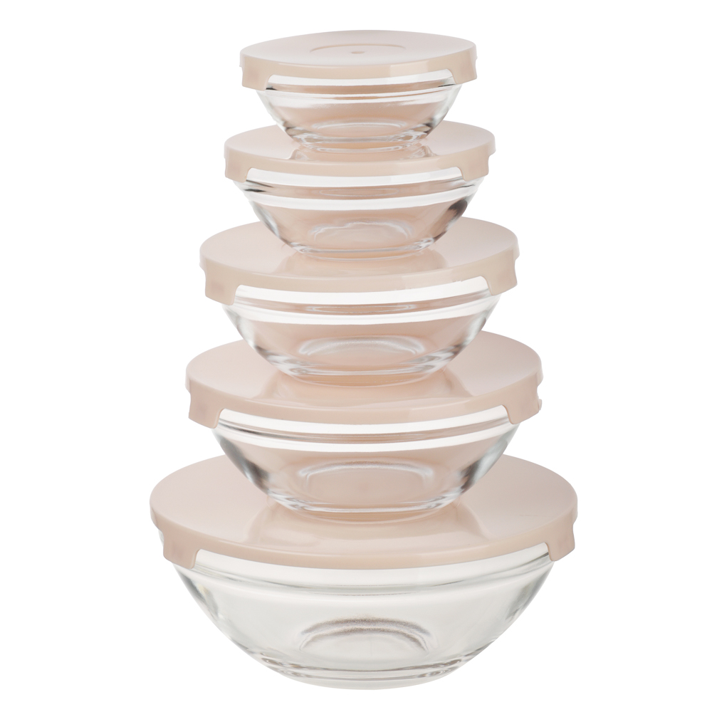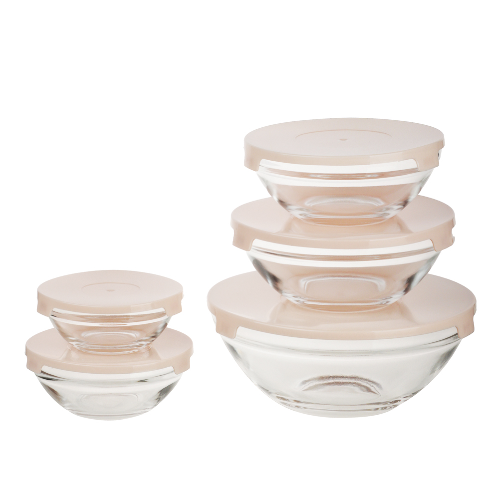 Набор салатников с крышкой MILLIMI – это 5 салатников из прозрачного стекла с пластиковыми крышками для повседневного использования на домашней кухне. Объем салатников: 900/500/350/200/130 мл. Удобны для хранения готовой еды в холодильнике, помогут поддерживать порядок, не занимая много пространства. Крышки блокируют проникновение запахов, а также защищают еду от заветривания, сохраняя свежесть и привлекательный вид блюд до конца срока хранения. Разные объемы удобны для различных нужд. Большой салатник можно использовать для приготовления и подачи салатов на стол, средние – для закусок или порционной подачи, а маленькие – для соусов или топпингов. Посуда обладает повышенной прочностью, устойчива к образованию трещин и сколов.