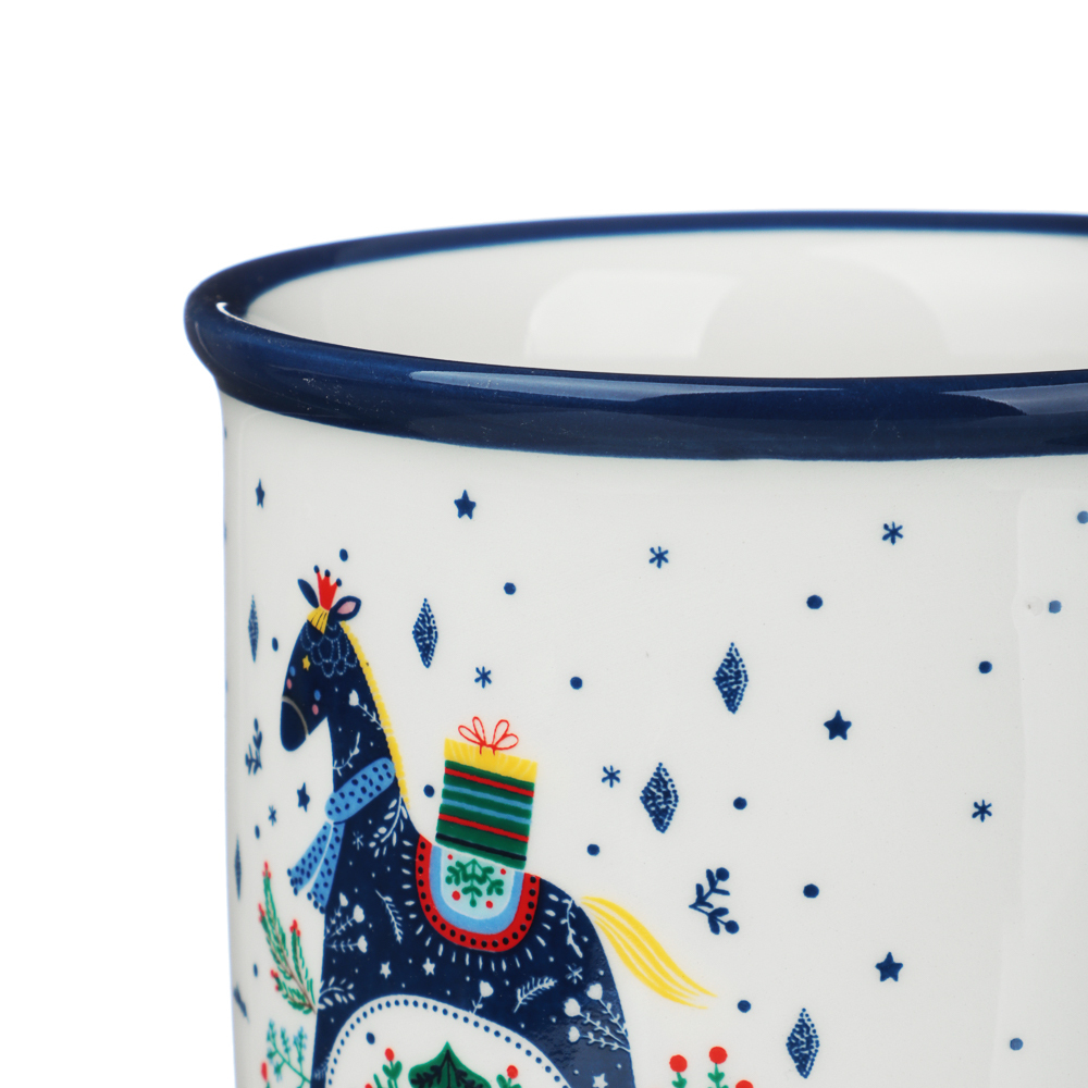Кружка MILLIMI «Нордик», объем 400 мл имеет самобытный дизайн с выразительным и в то же время лаконичным принтом с изображением символа года лошади, выполненным в сдержанных оттенках. Кружка наполнит каждое чаепитие атмосферой тепла, уюта и гармонии, деликатно дополнит сервировку стола и наполнит пространство атмосферой зимней сказки. Увеличенный объем оптимален для утреннего кофе или ароматного чая. Качественная керамика имеет повышенную прочность, легко очищается от налета, сохраняя безупречный вид. Отличный вариант практичного и памятного подарка на Новый год.