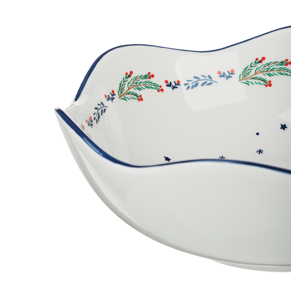 Салатник MILLIMI «Нордик», 21,5х7,5 см из керамики – это посуда для праздничной сервировки в новогоднем стиле. Имеет лаконичный дизайн с волнообразным неровным бортиком и тематическим принтом с елочкой, выполненным в спокойных оттенках. Салатник деликатно дополнит сервировку и позволит организовать эстетичную подачу салата или фруктов. Прочная экологичная керамика сохраняет безупречный вид после мытья, устойчива к образованию сколов и царапин. Посуда прекрасно комбинируется с любыми сервизами, столовыми приборами и другими предметами сервировки.