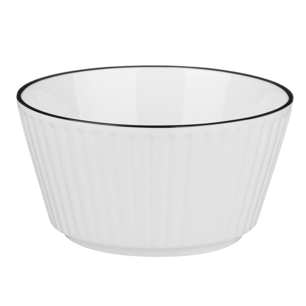 Небольшой, но стильный салатник из коллекции Соло выполнен из качественного фарфора с интересной черной отводкой по краю и рельефным узором. Объем 450 мл идеален для порционных блюд: подачи салатов, десертов, соусов или закусок. Фарфор не впитывает запахи, легко моется и подходит для СВЧ-печи. Минималистичный дизайн с выразительной текстурой дополнит сервировку и подчеркнет вкус блюд. Для романтических ужинов, завтраков или изысканной подачи – этот салатник станет вашим любимым аксессуаром!