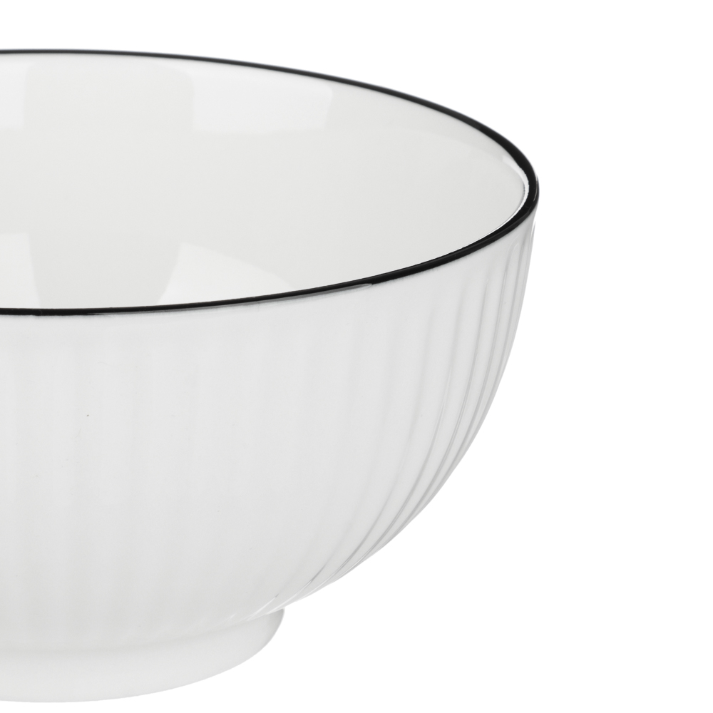 Салатник MILLIMI Соло объёмом 750 мл – элегантная посуда, выполненная из качественного белого фарфора с контрастной чёрной отводкой и рельефным узором. Такой дизайн выглядит современно и лаконично, легко сочетается с любой сервировкой. Размер 15,5х8 см оптимален для подачи салатов, закусок, десертов или пасты – прекрасно подойдет как для повседневных обедов, так и для праздничных ужинов. Фарфор сохраняет тепло блюд, не впитывает запахи и легко моется в посудомоечной машине.
