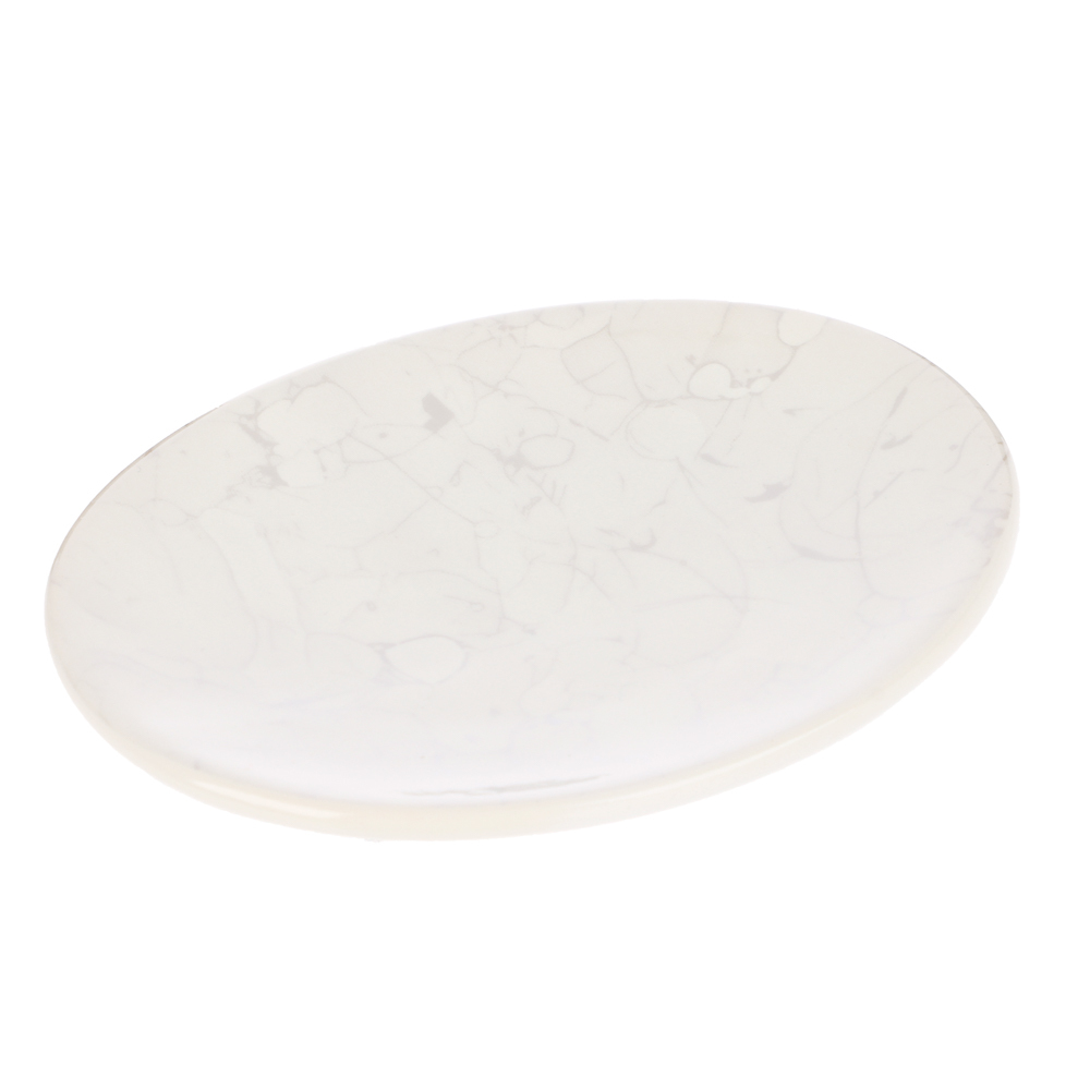 Изысканная мыльница MARMO воплощает в себе элегантность классического дизайна и современные тенденции в оформлении ванной комнаты. Овальная форма изделия, выполненная из высококачественной керамики, дополнена утончённым декором под серый мрамор, который придаёт аксессуару особую роскошь и благородство. Белый фон мыльницы гармонично сочетается с природными мраморными узорами, создавая эффектный контраст и делая каждый экземпляр уникальным. Керамический материал не только обеспечивает долговечность изделия, но и создаёт приятные тактильные ощущения при использовании.