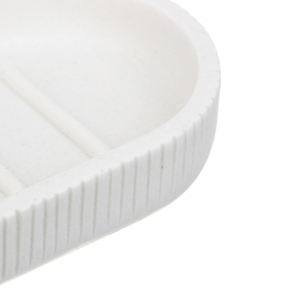 Мыльница VETTA «Дакота» — сочетание функциональности и современного дизайна. Прочная смола (полирезин) устойчива к влаге и не скользит на поверхности. Белый цвет и текстурные вертикальные линии создают ощущение чистоты и порядка. Идеальна для аккуратного хранения мыла, подходит к любому интерьеру и гармонично дополняет аксессуары серии «Дакота».