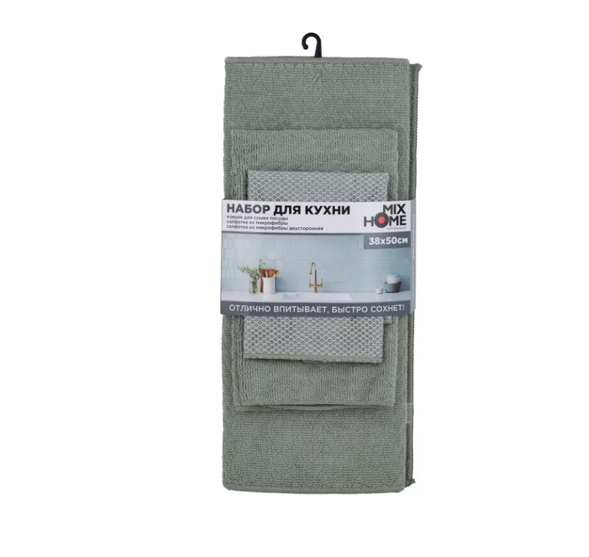 Набор: коврик для сушки посуды 38х50см, салфетки из микрофибры 2шт. цв.зеленый