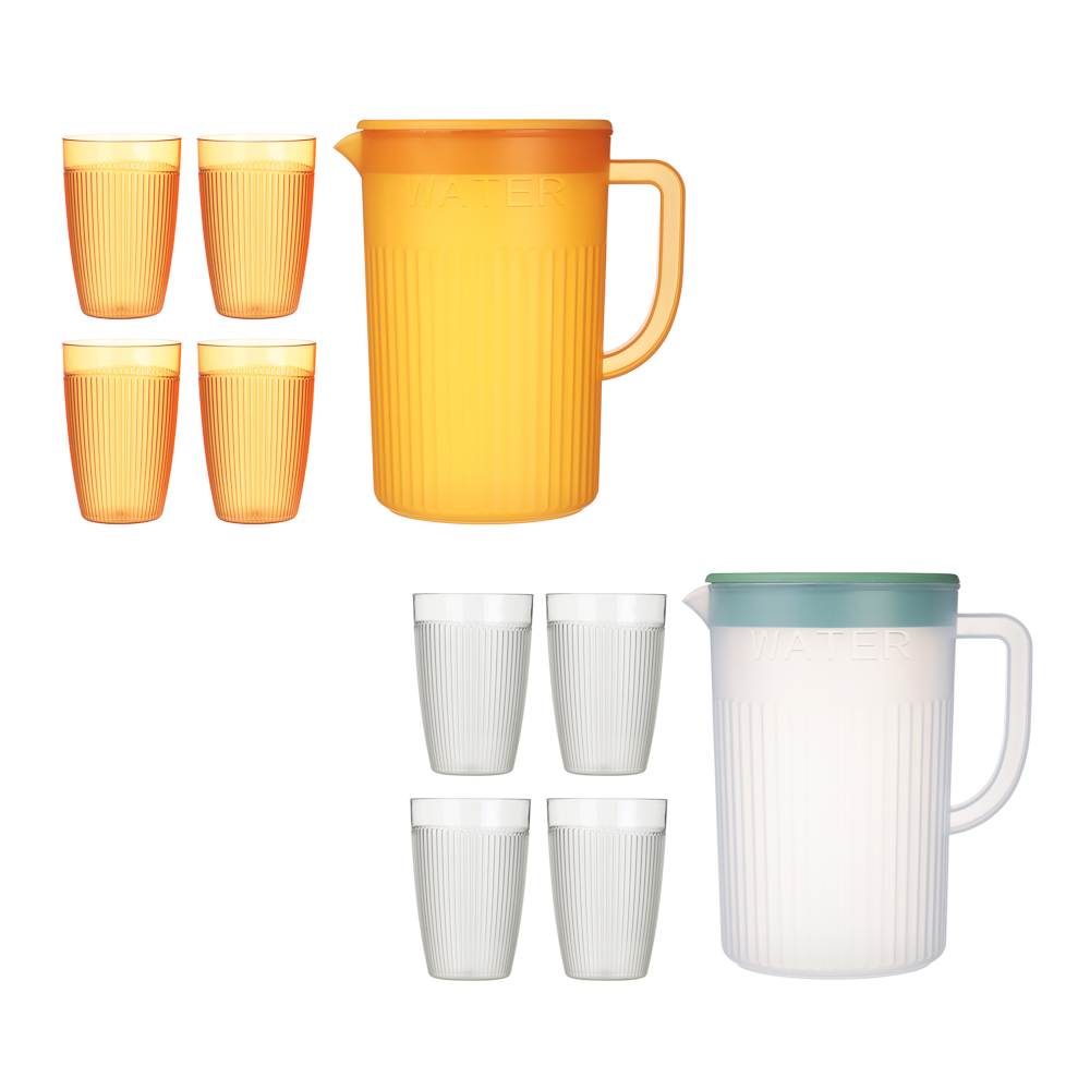 Набор с кувшином для воды объёмом 2 литра и четырьмя стаканами станет удобным и практичным решением для дома, дачи или пикника. Лёгкий и прочный пластик делает набор удобным в использовании и транспортировке, а крышка на кувшине помогает защитить напитки от пыли и посторонних запахов. Такой комплект отлично подойдёт для воды, сока, компота или лимонада, создавая комфорт во время приёма гостей или повседневного использования. Универсальный дизайн позволяет легко вписать набор в любой интерьер и сервировку стола. В ассортименте 2 дизайна.