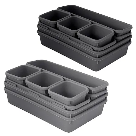 Материал: Пластмасса (РР) В набор входят: 2 органайзера размером 23,5х15,5х4,5см, 3 органайзера размером 23,5х8х4,5см, 3 органайзера размером 7,5х7,5х4,5см.
