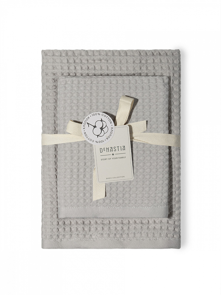 Набор полотенец вафельных 2шт DeNASTIA для бани/сауны 300gsm 70x140/50x90, 100% хлопок, светло-серый