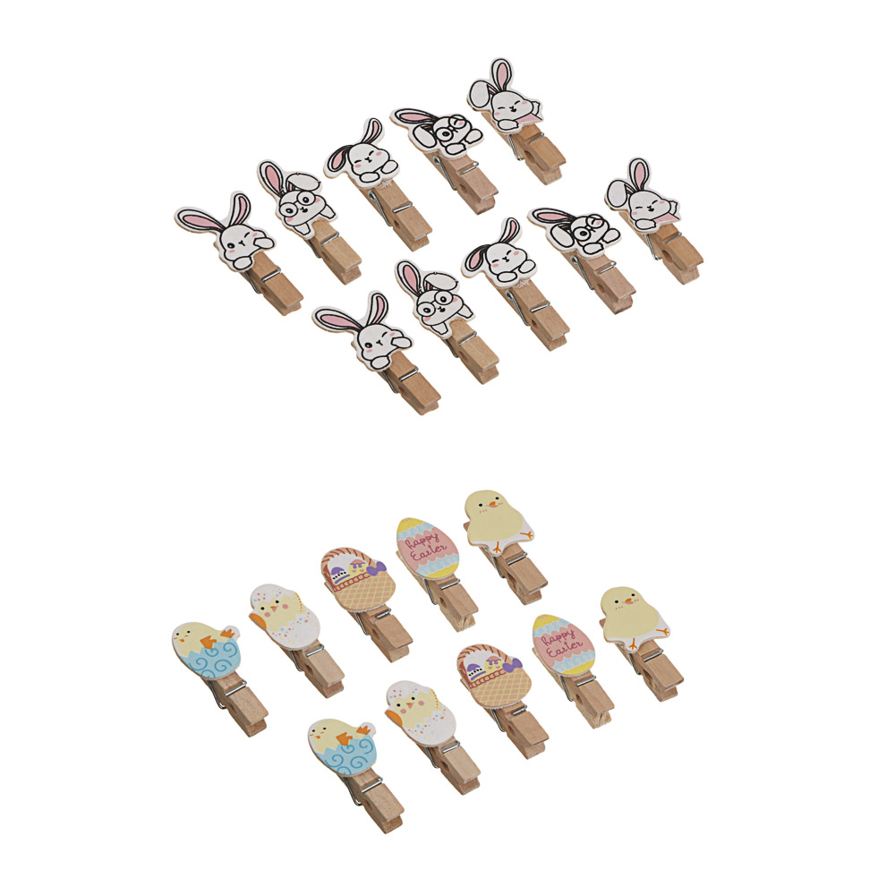 Набор декоративных прищепок — стильный и практичный аксессуар, созданный специально для оформления пасхальных композиций и праздничного декора. Каждая прищепка выполнена из натурального дерева и дополнена прочным металлическим механизмом, что гарантирует удобство использования и долговечность. Благодаря аккуратному дизайну и праздничной тематике прищепки легко дополняют открытки, подарочные упаковки, декоративные веточки, гирлянды или тематические композиции. Небольшие и лёгкие, они создают атмосферу уюта и добавляют вашему дому яркие акценты в преддверии Пасхи. Компактный набор из 10 штук в удобной упаковке станет отличным выбором для творчества, фотодекора или оформления праздничного стола. Каждая прищепка — это небольшой, но выразительный элемент, который поможет создать по-настоящему теплое и праздничное настроение. В ассортименте 2 дизайна.