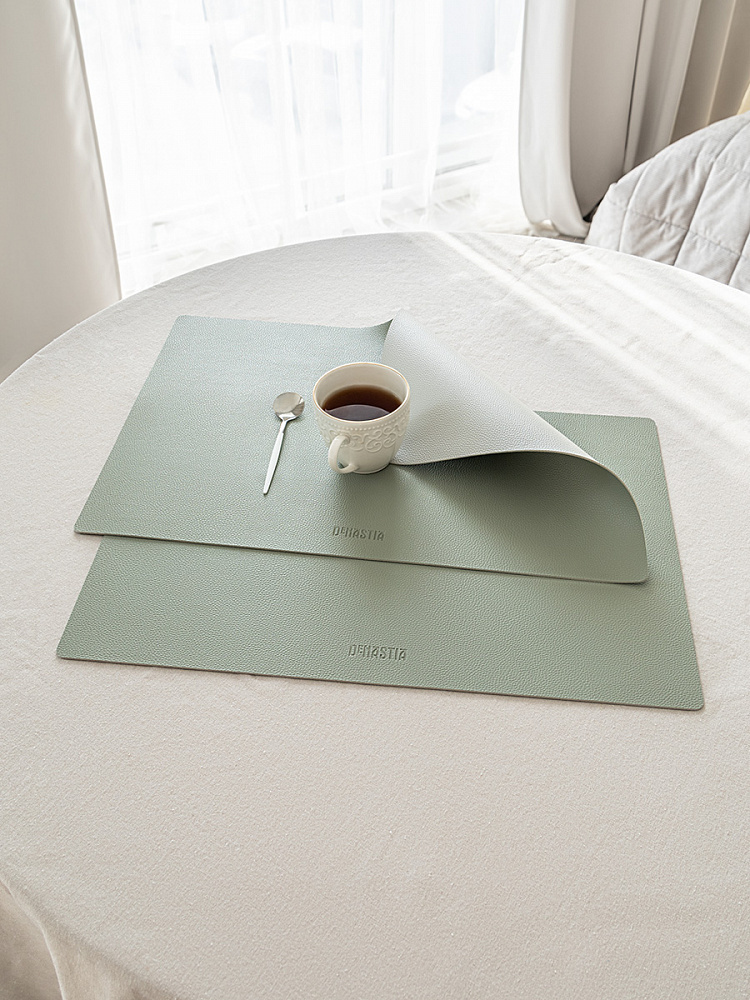 Набор двусторонних сервировочных салфеток 45x32 см из экокожи поможет создать красивую атмосферу за обеденным столом, будет препятствовать загрязнению и изнашиванию столешницы. Плейсматы двусторонние - цвет сервировочных салфеток можно менять в зависимости от настроения. Так же плейсматы для обеденного стола могут использоваться в качестве подставки под горячее блюдо (но нельзя применять в качестве подставки под горячую посуду для приготовления). У салфеток на кухонный стол высокая износостойкость; высокая степень защиты от пятен и загрязнений; водо- и влагонепроницаемость. Салфетки можно использовать на кухне, в гостиной или применить в дизайне интерьера. Салфетки под приборы рекомендуется мыть вручную под проточной водой с использованием нейтральных моющих средств или протирать влажной тряпкой. Во избежание деформации не тереть, не выжимать, высушить на ровной поверхности. Цвет оливковый/серый