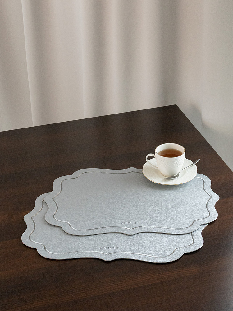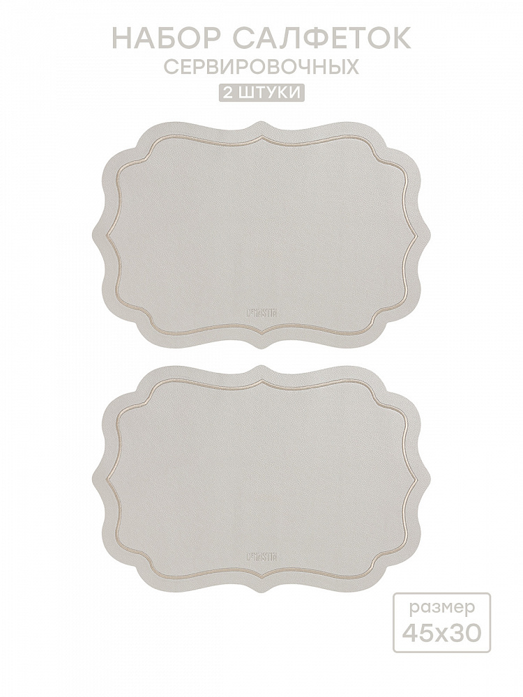 Набор салфеток сервировочных 2 шт DeNASTIA с отстрочкой 45x30 см, фигурный прямоугольник, ПВХ, цвет серебряный. Набор сервировочных салфеток из экокожи поможет создать красивую атмосферу за обеденным столом, будет препятствовать загрязнению и изнашиванию столешницы. Плейсматы для обеденного стола могут использоваться в качестве подставки под горячее блюдо (но нельзя применять в качестве подставки под горячую посуду для приготовления). У салфеток на кухонный стол высокая износостойкость; высокая степень защиты от пятен и загрязнений; водо- и влагонепроницаемость. Салфетки можно использовать на кухне, в гостиной или применить в дизайне интерьера. Плейсматы представлены в трендовой цветовой гамме, благодаря этому их можно с легкостью сочетать с остальными товарами для сервировки из нашего магазина DeНАСТИЯ. Добавьте эстетики и уюта в свой интерьер!