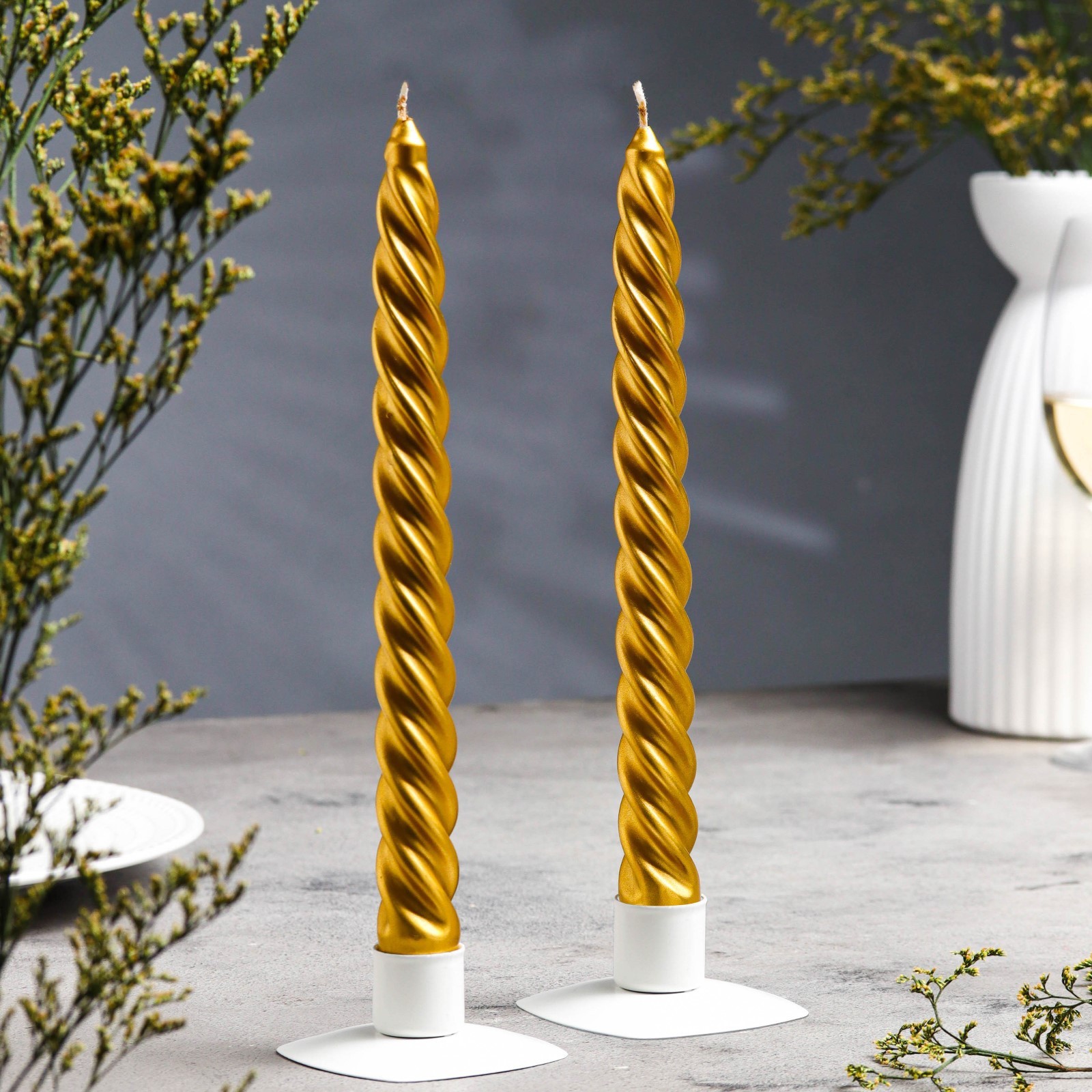 Набор свечей витых, 2.3×24.5 см, 5 ч, 50 г, 2 шт., золотой