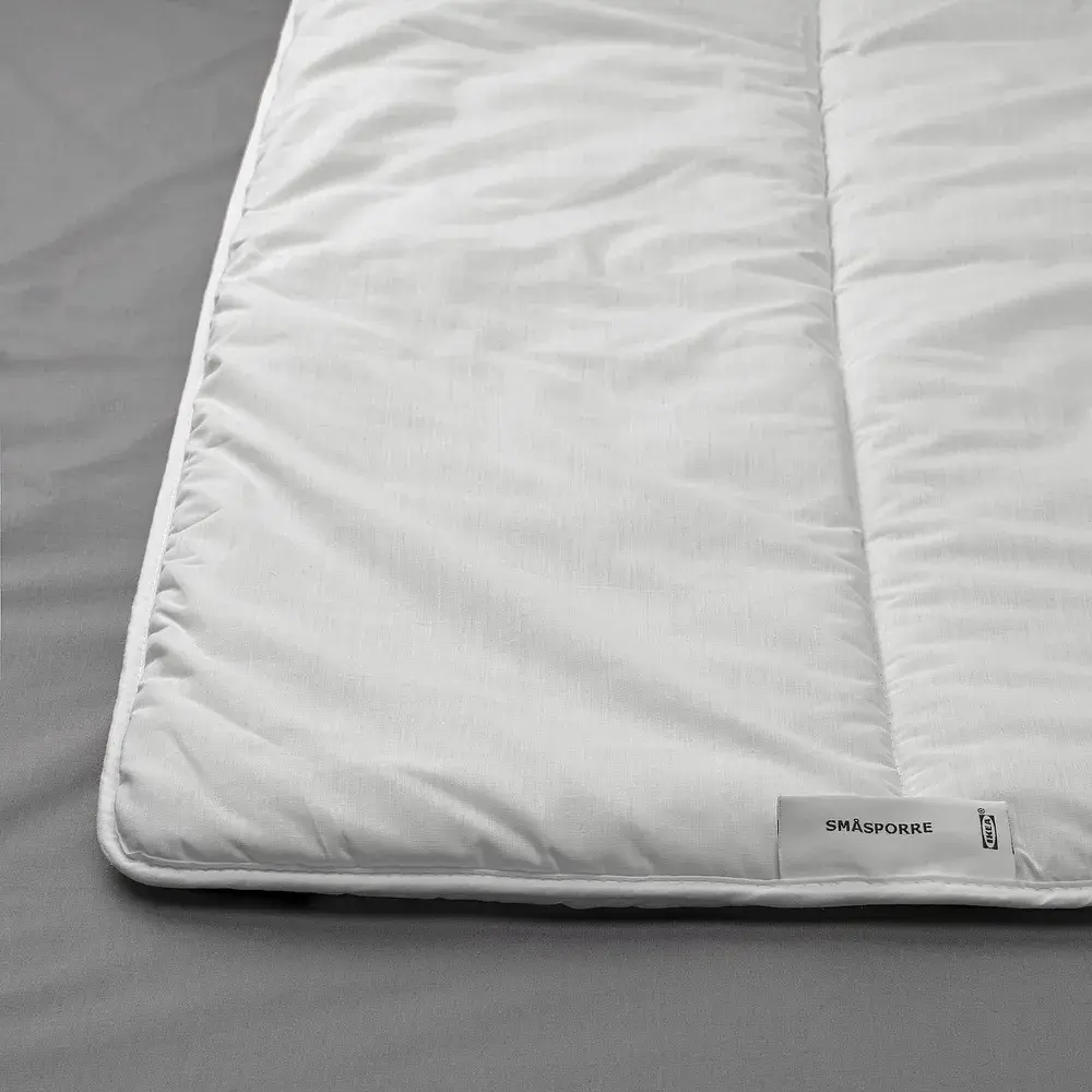 Теплое и простое в уходе одеяло из смесовой ткани из полиэстера и хлопка с наполнителем из мягкого полого полиэстерного волокна на основе переработанного сырья.